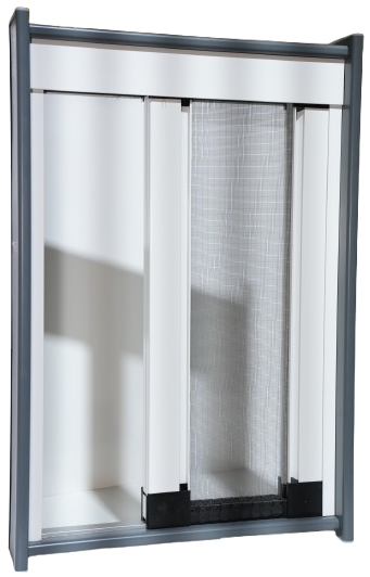 The vertical spring-operated mosquito screen, made with an aluminum profile, is designed to provide a practical and secure solution against insects without compromising the aesthetics of indoor spaces. Equipped with a vertical rolling mechanism, this screen retracts neatly, occupying minimal space. The compact box and grey mesh ensure a discreet design while offering complete protection.